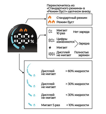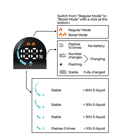 ● Boost Mode: 21.6W Maximum Vapor & Richness